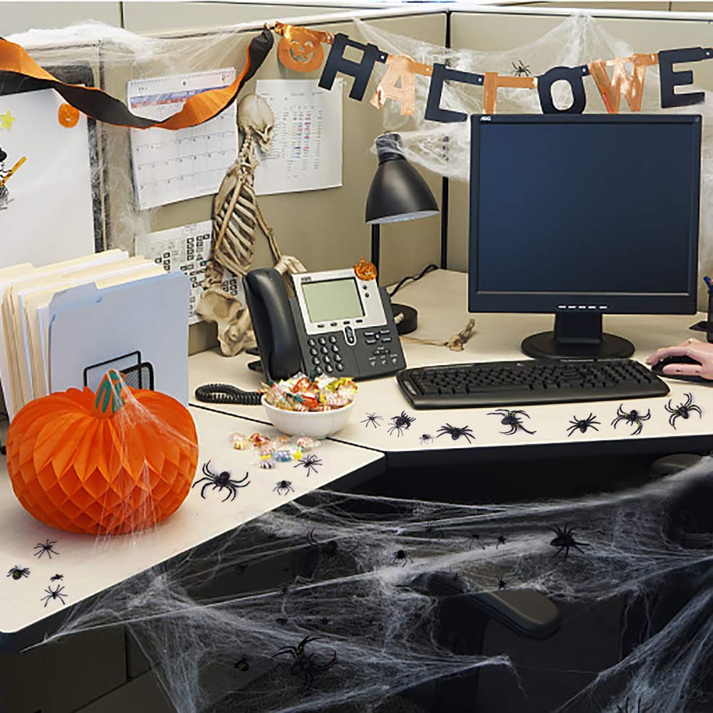 Organize a display of pumpkins of different shapes sizes and. 12 Decorating Ideas for an Office Halloween Party. Fake Spider Web Decorations with 60 Spiders.